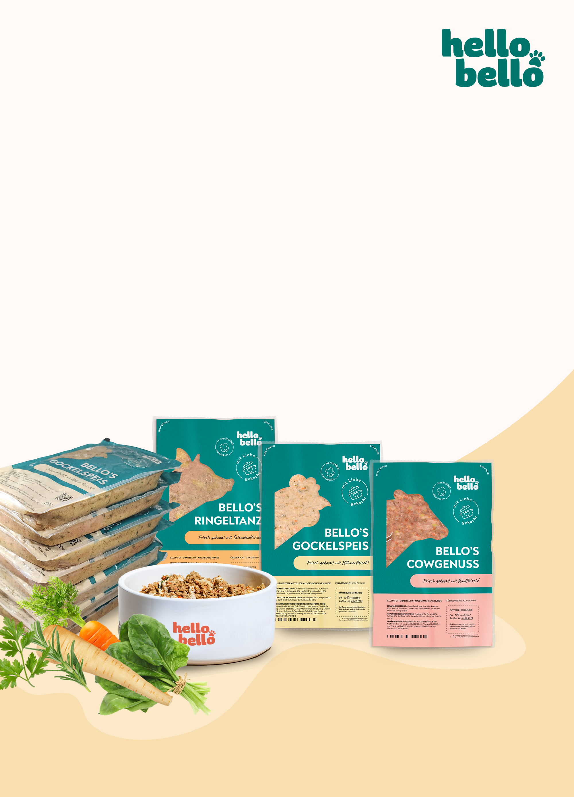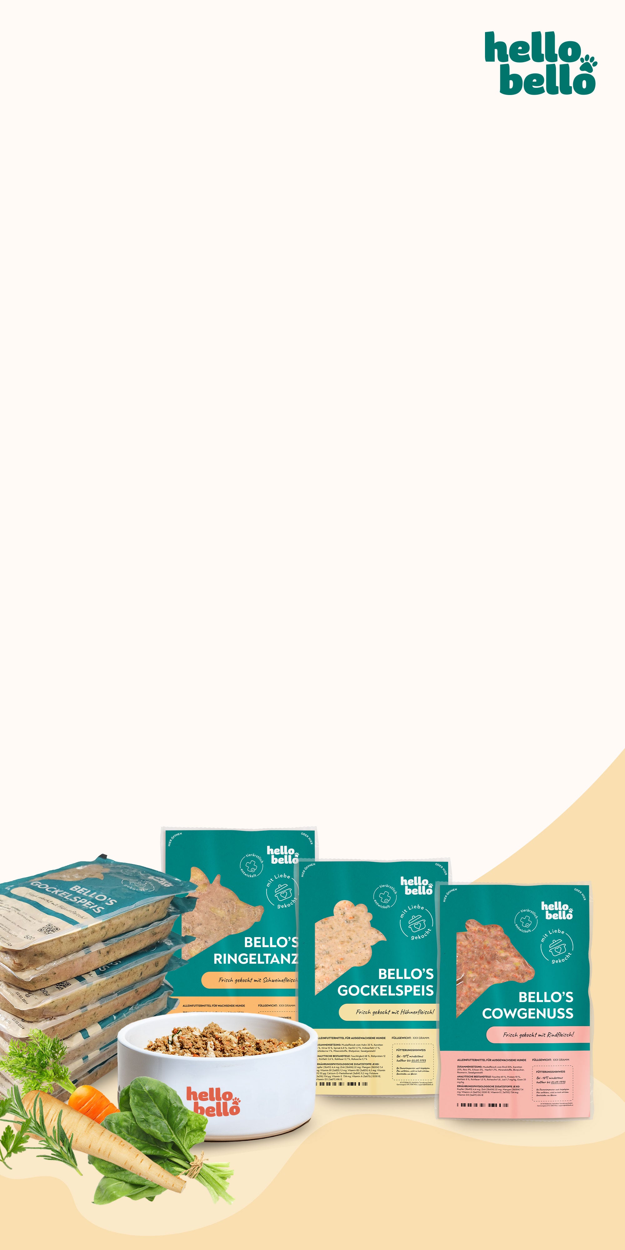 Hilfe! Mein Hund hat Durchfall Hat dein Hund Durchfall? Dann kannst du genau das tun Wenn dein Hund Durchfall hat, ist jede Minute des Unbehagens eine zu viel. Verdauungsprobleme sind nicht nur unangenehm, sie können auf Unverträglichkeiten, Stress oder falsche Ernährung hinweisen. Die gute Nachricht: Das richtige Hundefutter kann hier Wunder wirken. In diesem Blog erfährst du, warum HelloBello mit seiner schonenden Rezeptur und hochwertigen Frischfutterzutaten ideal ist, um den Magen Darm Trakt zu beruhigen, und wie du deinem Hund schnell wieder zu Wohlbefinden verhilfst. Teste HelloBello und spare 30 % auf deine erste Lieferung! Hat dein Hund Durchfall? – Ursachen und Symptome Durchfall bei Hunden ist ein häufiges, aber komplexes Problem, das vielfältige Ursachen haben kann. An erster Stelle stehen infektiöse Auslöser wie Bakterien oder Viren, die den Magen-Darm-Trakt belasten können. Zu den typischen Auslösern zählen plötzliche Futterumstellungen, die den sensiblen Magen-Darm-Trakt überfordern, sowie Stress durch Reisen, Umzüge oder Veränderungen im Alltag. Auch Darmparasiten wie Giardien oder Würmer können Verdauungsstörungen verursachen, ebenso wie verdorbenes Futter, Futtermittelunverträglichkeiten oder die Aufnahme von Giftstoffen. Selbst harmlose Auslöser wie zu viele Leckerlis oder „Beutefang“ im Garten können zu vorübergehenden Beschwerden führen. Doch wann wird beim Hund Durchfall zum Alarmzeichen? Ein Besuch beim Tierarzt ist dringend ratsam, wenn: Blut oder Schleim im Kot sichtbar ist der Hund apathisch wirkt, Fieber hat oder erbricht die Symptome länger als 24–48 Stunden anhalten Anzeichen von Dehydrierung auftreten (trockene Schleimhäute, eingesunkene Augen) Wenn dein Hund Durchfall hat dann dürfen scheinbar harmlose Fälle nicht ignoriert werden: Unbehandelt kann Durchfall zu Nährstoffmangel, Gewichtsverlust oder chronischen Entzündungen führen. Frühzeitiges Handeln, oder Präventionsarbeit mildert nicht nur die Symptome, sondern hilft auch, ernste Ursachen auszuschließen. Die richtige Futterwahl, wenn dein Hund Durchfall hat Die Auswahl des richtigen Futters ist entscheidend, um beim Hund Durchfall vorzubeugen. Verdauungsprobleme wie Durchfall schwächen nicht nur den Magen-Darm-Trakt, sondern beeinträchtigen das gesamte Wohlbefinden deines Hundes. Ein gestresstes Verdauungssystem kann Nährstoffe schlechter aufnehmen, was zu Energiemangel, Dehydrierung und langfristigen Gesundheitsrisiken führt. Die Wahl des Futters spielt hier, nicht nur wenn dein Hund Durchfall hat, eine Schlüsselrolle: Während belastende Zutaten die Symptome verschlimmern, kann leicht verdauliches, nährstoffreiches Futter wie HelloBello die Regeneration beschleunigen. Frischfutter bietet dabei den Vorteil, hochwertige Proteine und Ballaststoffe ohne künstliche Zusätze zu liefern, ideal, um den Körper zu entlasten und gleichzeitig mit essenziellen Vitaminen zu versorgen. Bei HelloBello wird besonders darauf geachtet, dass die Zutaten frisch, hochwertig und gesund sind. Durch die Zugabe von natürlichen Ölen wie Hanföl, gesundem Gemüse und wertvollen Nährstoffen, wird sichergestellt, dass dein Hund alle essenziellen Nährstoffe erhält, die er für ein vitales und glückliches Leben braucht. So bestellst du das beste Hundefutter bei HelloBello Die Bestellung von HelloBello Frischfutter ist kinderleicht: Lass dir das frisch gekochte Futter bequem und optimal portioniert direkt nach Hause liefern. Besuche die HelloBello-Website. Gib alle wichtigen Daten zu deinem Hund in unserem Futterkonfigurator an und erhalte deinen individuellen Futterplan – abgestimmt auf die Bedürfnisse deines Vierbeiners. HelloBello im Fokus: Warum es das beste Futter ist, wenn dein Hund Durchfall hat HelloBello: Natürlichkeit & Verträglichkeit HelloBello setzt auf eine klare Vision: Futter, das so natürlich ist wie die Bedürfnisse deines Hundes. Die Rezepturen verzichten bewusst auf künstliche Farb-, Aroma- oder Konservierungsstoffe, um den sensiblen Magen-Darm-Trakt nicht zusätzlich zu reizen. Stattdessen stehen frische, hochwertige Zutaten im Mittelpunkt, die nicht nur nähren, sondern auch aktiv zur Regeneration beitragen. Diese Philosophie macht HelloBello besonders bei Verdauungsproblemen zur vertrauenswürdigen Wahl, denn weniger Belastung bedeutet mehr Raum für Heilung. Wenn dein Hund Durchfall hat, ist es die optimale Lösung und auch so kann HelloBello überzeugen. Schlüsselzutaten bei Magen-Darm-Problemen Die Wirksamkeit von HelloBello, wenn dein Hund Durchfall hat, basiert auf vier Säulen: Hochwertige Proteine: Mageres Huhn liefert leicht verdauliches Eiweiß, das den Körper ohne Überlastung mit essenziellen Aminosäuren versorgt. Sanfte Kohlenhydratquellen: Reis und Süßkartoffel sind gut verträgliche Energielieferanten, die den Darm beruhigen und stabilisieren. Reis bindet überschüssige Flüssigkeit, während Süßkartoffeln präbiotische Ballaststoffe für eine gesunde Darmflora bieten. Verzicht auf Reizstoffe: HelloBello enthält weder Getreide noch künstliche Zusätze – zwei häufige Auslöser von Unverträglichkeiten. Diese Reduktion auf das Wesentliche minimiert das Risiko, den gereizten Verdauungstrakt weiter zu stressen. Omega Fettsäuren: HelloBello enthält Hanföl. Hanföl ist besonders reich an den essenziellen Fettsäuren Omega-3 und Omega-6, die der Körper des Hundes nicht selbst herstellen kann und daher über die Nahrung aufnehmen muss. Diese Fettsäuren spielen eine wichtige Rolle bei zahlreichen Körperfunktionen Durch diese Kombination aus ausgewählten Inhaltsstoffen und schonender Verarbeitung unterstützt HelloBello nicht nur die akute Genesung, sondern stärkt langfristig die Widerstandsfähigkeit des Darms. Außerdem kann es das Risiko auf Durchfall verringern, wenn dein Hund Durchfall hat. Vitamine und Mineralstoffe sind wichtig, wenn dein Hund Durchfall hat Frischfutter wird bei Hunden mit Verdauungsproblemen oft besser 