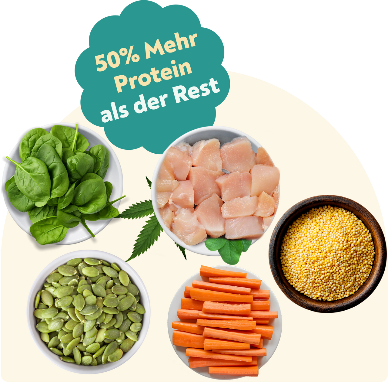 Ersetze 50% des aktuellen Futters deines Hundes durch HelloBello Vollwertnahrung.