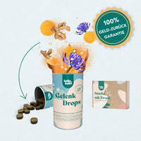 Der Zweck dieser Hundekekse ist es, die Gelenkgesundheit deines Hundes dauerhaft zu unterstützen und zu fördern. Im Falle einer akuten Erkrankung können sie eine sinnvolle Ergänzung sein, ersetzen aber keine Medikamente und den Besuch beim Tierarzt.